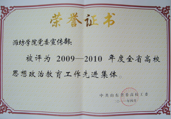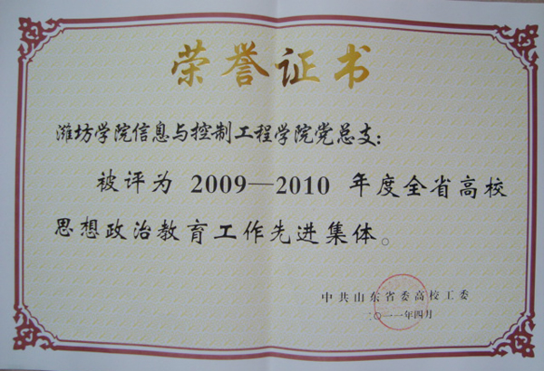 本站訊:山東省委高校工委主辦的2009—2010年度全省高校思想政治教育工作先進集體、先進個人評選活動日前揭曉。我校黨委宣傳部、信息與控制工程學院黨總支被評為先進集體,李學軍、劉維利、郭建偉、姚秀琦被評為先進個人。