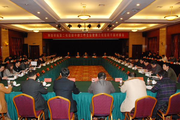 辛丕宏在會上講了五點意見。第一,突出主題,把握主線。“突出主題”即突出科學發展的主題,“把握主線”即把握加快轉變經濟發展方式的主線。掛職干部即將到崗,對十七屆五中全會精神和剛剛通過的國家“十二五”規劃綱要的再學習、再認識、再提高是第一位的。通過深入學習,把突出主題、把握主線的要求落實到實際工作中。第二批掛職鍛煉干部回到學校后,要馬上投入到學校的教學、科研、管理、服務中來,跟上學校發展的步伐。學校的“十二五”規劃已經印發,要開好頭起好步也要貫徹突出主題、把握主線的要求。第二,深入實際,勤于學習。學校的干部掛職鍛煉工作在市委市政府和各縣市區、開發區有關部門的關心和幫助下取得了明顯成效,總結出一些寶貴的經驗,第三批掛職鍛煉干部的選派方式也進一步完善,更受到掛職單位的歡迎。掛職鍛煉的根本目的是學習鍛煉,利于教學。第三批掛職鍛煉干部要真正深入實際,別浮于表面。要勤于用腦,勤于學習,向實踐學習,向一線的人學習,了解世界,了解實際,做高素質應用型的教師,以更好地教育學生。第三,發揮特長,注重實效。掛職干部要發揮好專長,首先要搞好調研,看掛職單位需要什么,幫忙別添亂,也不要急功近利。要當好聯絡人,發揮每個人、發揮濰坊學院、發揮高校的特長,辦點實事。濰坊學院要力爭在濰坊的經濟社會發展中發揮不可替代的作用。第四,創先爭優,廉潔自律。掛職干部要樹立高校中青年管理干部和高層次人才的良好形象,就要積極參與到全黨正在開展的創先爭優活動中。要增強免疫力,時刻牢記廉潔自律,以所掛職崗位的標準嚴格要求自己,集中精力搞好學習。第五,加強交流,共同提高。要做好團隊選派、任前培訓、定期座談交流、期中跟蹤考查、期滿考核鑒定等環節的工作,不斷總結經驗,使整個掛職鍛煉工作有序進行,不斷提高。各個團隊成員之間要加強交流,增強協作意識,形成團隊精神,同時要加強校地、校企之間的溝通。濰坊學院以服務地方經濟建設為己任,以促進共同提高。
