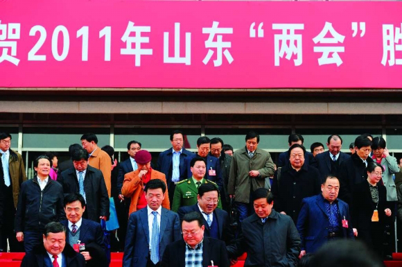 圖1為與會的省人大代表走出會場。轉發自2月18日齊魯晚報頭版頭條。