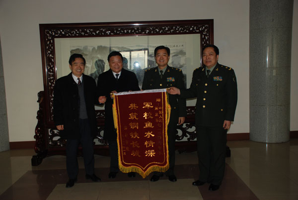 本站訊:新春佳節將至,1月20日,學校黨委書記辛丕宏、院長王守倫到濰坊軍分區、某部走訪慰問部隊官兵,送去了慰問品和錦旗,對部隊多年來對學校的支持表示感謝,并邀請部隊首長到學校參觀訪問。交談中,辛丕宏介紹了學校的發展情況,希望今后繼續加強合作。