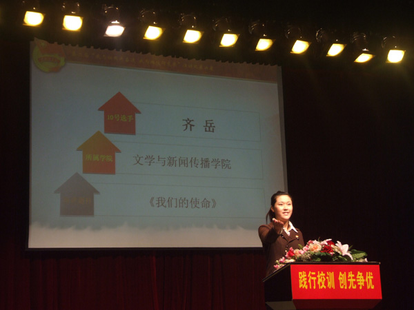 各學院在初賽的基礎上,選拔推薦出35名優秀選手參加了學校復賽,經過激烈角逐,共有來自8個學院的11名選手入圍當天下午的決賽。學生們用自己的親身經歷和感受,耳聞目睹的感人事跡,暢談對校訓精神的深入理解,抒發濰院學子愛黨愛國愛校熱情,表達了緊跟黨走、刻苦學習、創先爭優的堅定信念。