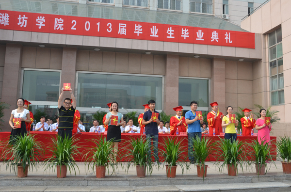 王守倫首先向同學們圓滿完成學業表示熱烈祝賀。他說:“幾年前,你們帶著美好的憧憬,走進了濰坊學院的大門。如今,你們在學習中求知進步,在生活中鍛煉成長。你們秉承‘厚德、博學、求是、創新’的校訓,刻苦學習,奮力拼搏,順利完成了學業,綜合素質得到了全面提高。在你們當中,有920人光榮地加入了中國共產黨,有961人被評為優秀畢業生、有844人被評為三好學生和優秀學生干部,在你們當中,還有近千人次在‘挑戰杯’、數學建模大賽、電子設計大賽等學科競賽活動中取得優異成績。艱辛的努力,換來的是累累的碩果,我為你們取得的成績和出色的表現感到驕傲和自豪,我對你們每一次的成長和進步表示誠摯的祝賀!”王守倫勉勵同學們走出校門后要志存高遠,腳踏實地,重視實踐。不管從事什么工作,都要保持謙虛謹慎的態度,認真地向實踐學習,向同事學習,在新的工作生活環境中進一步豐富和發展自己,把自己的命運同國家的命運、民族的命運結合起來,為實現中華民族的偉大復興而砥礪前行、不懈奮斗!他希望同學們背起智慧的行囊,張開熱情的臂膀,為終將逝去的青春,積蓄和傳遞綿延不絕的正能量,向著“美麗中國”的大目標,出發!