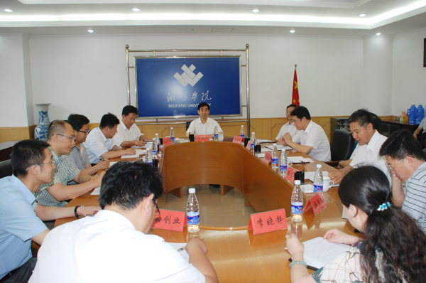 本站訊 7月2日,濰坊市人力資源和社會保障局有關負責同志來校,對連續四次獲得濰坊市專業技術拔尖人才的我校教授、發展規劃處處長李長明進行管理期滿考察。黨委副書記牛鐘順主持座談會并介紹了李長明的情況。黨委組織部、人事處、科研處、信控學院等部門的負責同志和老師參加了座談會。