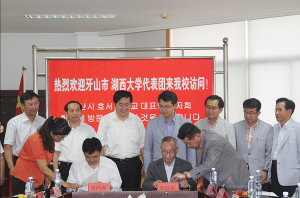 本站訊 7月3日,韓國牙山市市長卜箕旺、湖西大學校長姜一求一行13人來校訪問,簽署合作協議。院長王守倫與姜一求簽署了合作協議。根據協議,今后雙方將在學術、文化交流、相互發展以及教育研究和其他有關領域方面開展合作。副院長丁子信出席儀式。