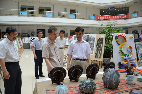 本站訊 美術學院是校黨委副書記牛鐘順的聯系單位,6月17日,在美術學院于校圖書館舉辦2014畢業生作品展之時,牛鐘順在宣傳部、美術學院相關負責同志的陪同下前往參觀展覽,勉勵同學們要感恩母校,回報父母,為實現中國夢獻出自己的智慧和力量。