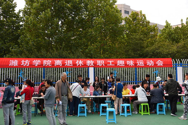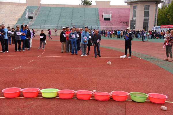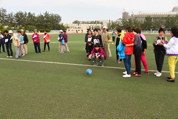 本網訊 9月28日,濰坊學院離退休教職工金秋趣味運動會在學校田徑運動場舉行。360余名離退休老同志參加了籃球撞柱、排球保齡、投筷進瓶、夾玻璃球、套圈、投沙包等6個項目的比賽。