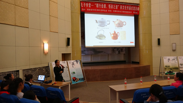 本次活動邀請生物與農業工程學院茶文化課程專業講師——高秀清博士主講。高老師分別從茶葉采制、泡茶用水、茶具選擇、沖泡技藝、對飲之人和茶會等六部分來進行講解,以傳統中華茶文化和現代茶科學研究為本體,詮釋了中華茶的起源、發展和傳播的歷史及其體現出的人文精神。其間,高老師引經據典,不時穿插著與茶文化有關的歷史故事和古詩句,將追求完美的飲茶之道和“精行儉德”的茶精神完美的結合在一起,為現場觀眾帶來了一場精妙絕倫的茶文化之旅。