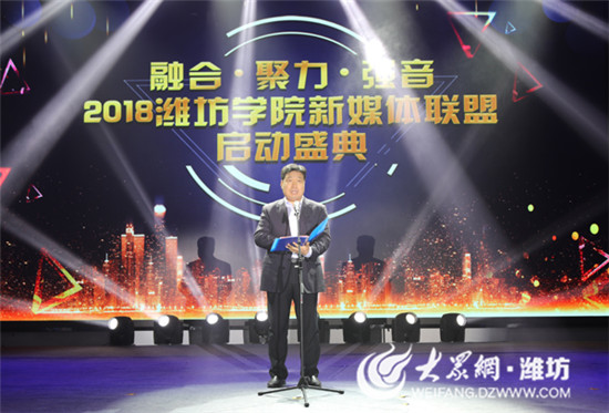王清明在致辭中對濰坊學院新媒體的發展成就給予充分肯定。他希望聯盟理事單位及全體成員,一是深化理論武裝,強化正面引導。要不斷深化對馬克思主義中國化最新成果,特別是習近平總書記系列重要講話精神的研究闡釋,堅持以黨的理論創新成果武裝師生頭腦;二是創新工作方法,凝聚強大力量。要聽懂青年的心思,聽出時代的脈搏,使高校宣傳思想工作切實擔負起指引思想、指引方向的重任;三是推進融合發展,形成媒體合力。要積極構建以網絡為中心的高校宣傳思想工作大格局,探索實現傳統媒體與新興媒體有效聯動、媒體氛圍與校園環境有機融合的機制,形成媒體合力;四是加強隊伍建設,完善工作機制。要制定重大輿情應對方案,完善輿情研判、報送、快速響應等管理機制,為學校改革發展營造良好輿論氛圍。