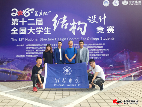 11月8日~11日,由中國高等教育學會工程教育專業委員會、高等學校土木工程學科專業指導委員會、中國土木工程學會教育工作委員會、教育部科學技術委員會環境與土木水利學部聯合主辦的,第十二屆全國大學生結構設計競賽在華南理工大學舉行。經過四天緊張激烈的角逐,由濰坊學院建筑工程學院2015級本科生王方方、尹智璇、姜文翰三名同學組成的代表隊,在指導老師的帶領下成功斬獲二等獎,成績排名位居山東省參賽高校首位。