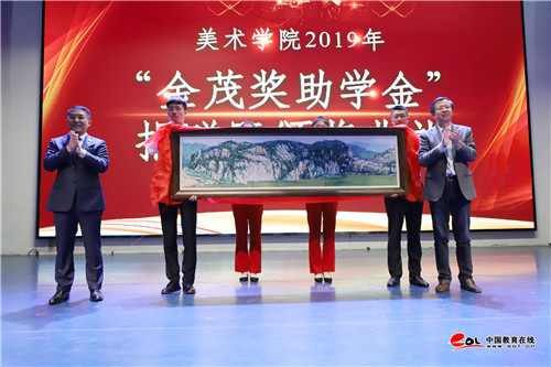 捐資助學是一件功在當代、利在千秋的善事,“金茂獎助學金”的設立不僅體現了濰坊金茂國際大酒店積極履行社會責任,與學院共同培養優秀人才的愿望,也為莘莘學子的成長成才提供更大的空間和舞臺。美術學院師生將發揮好“金茂獎助學金”的激勵引導作用,滿懷感恩之心,不辱使命、砥礪奮進、以此次頒獎典禮為契機,認真學習貫徹習近平總書記在紀念“五四”運動一百周年大會上對青年提出的希望,繼續發揚五四精神,以實現中華民族偉大復興為己任,不辜負黨的期望、人民期待、民族重托,不辜負這個偉大的時代,讓青春煥發更加絢麗的光彩,為祖國七十華誕貢獻青春力量!(陳菲菲)