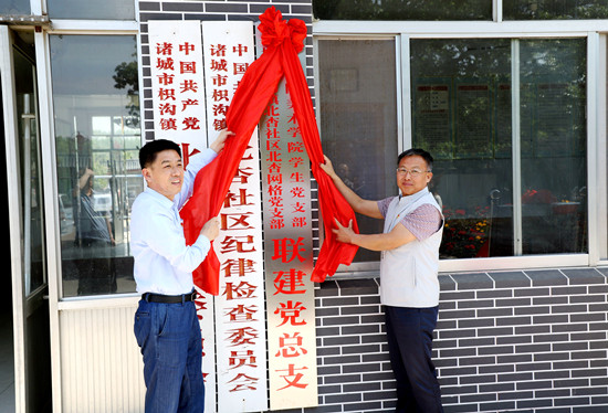 在北杏社區黨委,濰坊學院正處級組織員郭建偉與諸城市委組織部副部長王剛共同為“濰坊學院美術學院學生黨支部 諸城市枳溝鎮北杏社區北杏網格黨支部聯建黨總支”揭牌;濰坊學院美術學院黨總支副書記、院長周曉光與枳溝鎮黨委副書記周春平共同為“濰坊學院美術學生黨支部教育實踐基地”揭牌;濰坊學院美術學院黨總支書記于建華與北杏社區黨委書記高成玉簽署了“基層黨建紅色品牌培育創建合作框架協議”,雙方就合作原則、合作內容、雙方責任等事項達成一致意見,建立了高校基層黨組織與地方紅色社區黨組織開展黨建聯建共建的長期合作關系。