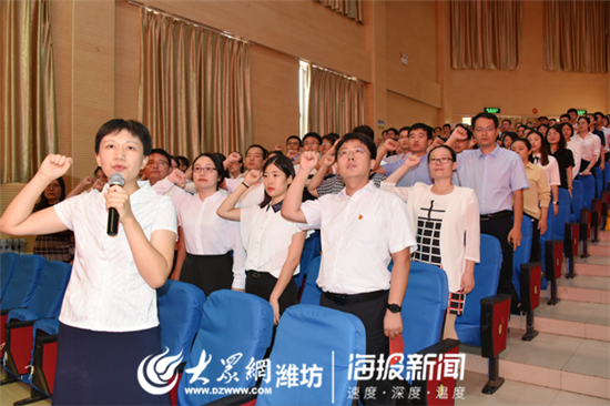94名2019年新進教師帶著青春的朝氣,懷著為教育事業奮斗終身的信念,舉起右手在國旗下莊嚴宣誓。新進教師紛紛表示,這樣的儀式讓他們更有歸屬感和使命感,也能讓濰院精神更好地融入到教書育人的實踐中。
