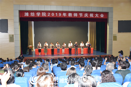 9月10日,在第35個教師節到來之際,濰坊學院在圖書館報告廳舉行2019年教師節慶祝大會,表彰2019年以來獲得市級以上榮譽稱號教師,為37名榮休教師頒發紀念品,94名新進教師舉行莊嚴的入職宣誓。濰坊學院黨委書記孫文亮出席大會并講話, 大會由濰坊學院校長馮濱魯主持。濰坊學院領導王清明、丁子信、馬茜華、朱猷武、趙光強、王旭升、王建新出席大會。
