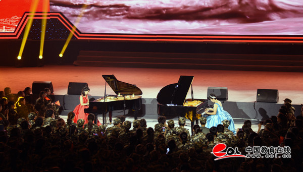 中國教育在線訊 9月27日晚,在慶祝新中國成立70周年,開展“不忘初心、牢記使命”主題教育之際,濰坊學院慶祝新中國成立70周年文藝晚會在學校體育館舉行。濰坊學院領導孫文亮、馮濱魯、王清明、丁子信、馬茜華、朱猷武、趙光強、王旭升,市委教育工委副書記、市教育局二級調研員李廣敬與6000余名師生及軍訓團官兵一起觀看晚會,共同回顧70年來新中國的建設成就,祝愿偉大的祖國繁榮昌盛。