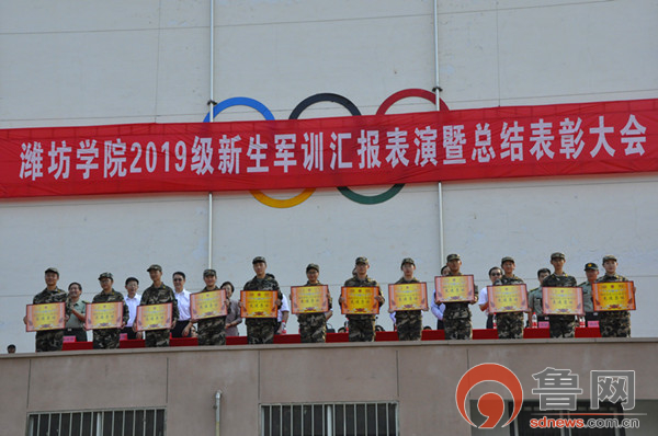 會上,濰坊學院黨委書記孫文亮向承訓部隊贈送錦旗。軍訓團政委李學軍宣讀新生軍訓團表彰決定,與會領導為獲獎集體和個人頒獎。2019級新生康文馨代表參訓學生發言。 (通訊員 郭然 )