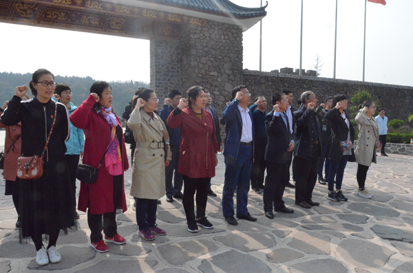參觀結束后,黨員們面向黨旗宣誓,重溫入黨誓詞,始終銘記入黨誓言,也是對自己的一種鞭策和激勵。返程的路上,黨員們仍舊熱情不減,對本次現場教學進行討論,大家一致表示,通過參觀學習全體黨員感受到了革命先烈不怕犧牲、眾志成城的偉大精神和堅定信念,受到了一次深刻的黨性教育。
