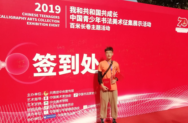 據悉,“我和共和國共成長”共繪百米長卷活動是2019中國青少年書法美術征集展示活動的重要組成部分。該活動由共青團中央宣傳部主辦,6月啟動,面向廣大青少年書法美術愛好者征集作品。所有通過審核的征集作品按照專家意見和網絡點贊的權重,綜合得分評選出入圍作品,再從入圍作品中遴選出赴京參加“我和共和國共成長”百米長卷現場創作活動的人選。美術學院學生黨員遲浩恩的作品《黃山建筑寫生》從全國萬余份入圍作品中脫穎而出,遲浩恩本人也因此受邀進京參加百米長卷現場創作活動。據現場相關負責人介紹,“這幅匯聚了百余位藝術愛好者和多位書法、美術界專家的作品,將作為慶祝中華人民共和國成立70周年的禮物收藏,這對每一位創作者來說都意義非凡。”