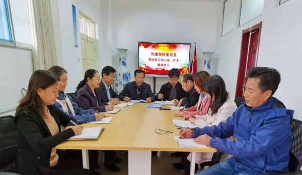 本網訊 11月7日上午,傳媒學院黨總支理論學習中心組(擴大)舉行集體學習會。黨總支書記盧運山主持,院長尹建民、副書記劉先學、副院長宗緒鋒出席。