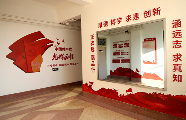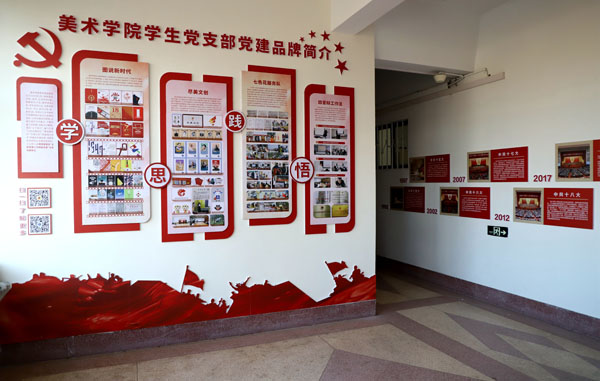 本網訊 為深入推進“不忘初心、牢記使命”主題教育,美術學院黨總支將主題教育與“全國黨建工作樣板支部”培育創建工作有機結合,將“加強黨建陣地文化建設”確定為領導班子即知即改問題清單,注重融合互促,凸顯美育素養,強化輿論引領,堅持成果轉化,筑牢長效機制,著力打造具有“美院氣質”的走廊文化,營造濃厚的育人氛圍,不斷推進主題教育往深里走、往心里走、往實里走。