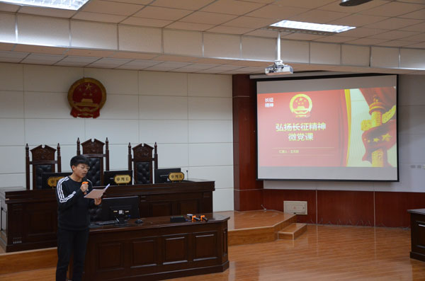 本網訊 在“不忘初心,牢記使命”主題教育活動中,為加強學生黨員的理想信念教育,對中國共產黨的初心和使命有更加深入的了解和學習,法學院學生黨支部開展學生黨員微黨課展示活動,讓學生黨員在“講中學,學中講”。本學期的微黨課展示活動于11月28日下午在人合樓8321模擬法庭舉行,學生黨支部全體成員及部分入黨積極分子參加。