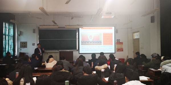 本網訊 12月4日,省教育工委黨的十九屆四中全會宣講團成員、學校馬克思主義學院教授呂學山,在致遠樓為文學院師生黨員宣講黨的十九屆四中全會報告精神。