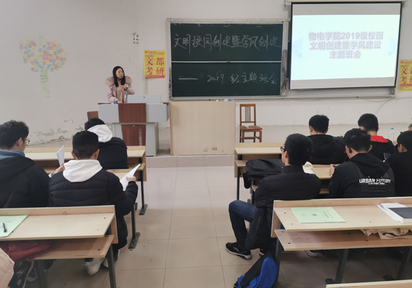 本網訊 為構建文明、和諧的學院環境,提升學生的文明素養和道德水平,引導同學們認真復習,備戰期末考試, 12月18日,物理與光電工程學院各年級于明正樓5109教室,分別召開學風建設主題班會。班會由各年級輔導員主持,各年級全體同學參加。