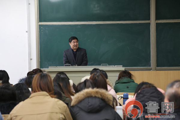 魯網12月25日訊 12月24日上午,濰坊學院黨委書記孫文亮到馬克思主義學院給思想政治教育專業2018級學生講授形勢與政策課。