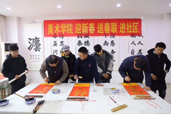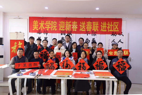 本網訊 1月6日,美術學院教工第一黨支部、學生黨支部師生代表在黨總支書記于建華、副書記劉雪梅的帶領下,赴東關街道工福街社區開展“迎新春 送春聯 進社區”主題黨日活動。