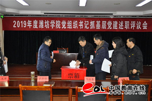 中國教育在線訊 2020年1月8日,濰坊學院召開2019年度黨組織書記抓基層黨建述職評議會。濰坊學院黨委書記孫文亮主持會議并講話。濰坊學院黨委副書記馮濱魯、黨委委員丁子信、馬茜華、趙光強、王旭升、王建新出席會議。
