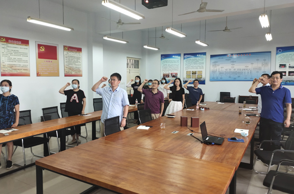 與會黨員認真觀看學習,深深被奮戰在抗疫戰線上的榜樣事跡所感動,也深深感受到在黨的領導下,戰疫展現出的中國精神、中國效率、中國力量。節目最后,在抗疫榜樣的領誓下,黨員們高舉右拳,重溫入黨誓詞,莊嚴宣誓。