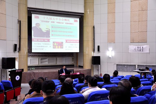本網訊 為深入學習貫徹黨的十九屆五中全會精神,按照學校統一部署,12月11日,機關黨委邀請馬克思主義學院“形勢與政策”教研室主任呂學山教授為全體黨員群眾做了黨的十九屆五中全會精神輔導報告會。
