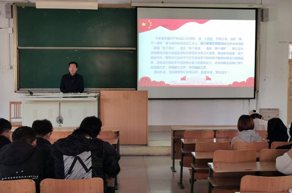 盧運山結合學生返校后的思想實際和當前開展黨史教育的形勢要求,從中國共產黨的誕生、中國共產黨名稱的由來和中國共產黨人的初心與使命三個方面,給學生上了一堂生動精彩的黨性教育課,引導大學生聽黨話、跟黨走、堅信念,勇擔當,增強了青年大學生的理論自信和道路自信,加深了對堅持黨的領導的政治認同和情感認同。