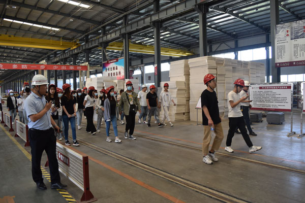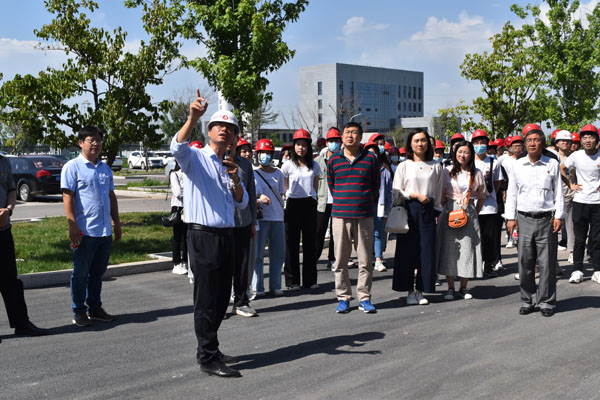在昌大集團副總李飛等人的陪同講解下,黨員師生們到寶通街快速路工程現場,深入鋼筋車間、PC車間參觀,同學們現場學習了預制箱梁的生產工藝和養護技術,參觀了PC部品展示區、濰坊市裝配式建筑示范項目——公司科研樓、職工餐廳等。