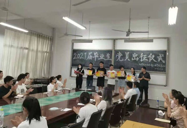 本網訊 2021屆畢業生離校在即,為教育引導畢業生黨員不忘初心,牢記使命,在未來的學習、工作崗位上發揮好先鋒模范作用,化學化工與環境工程學院黨總支于6月23日舉行了畢業生黨員出征儀式。學院黨總支書記張華、學生黨支部支委、2021屆全體畢業生黨員以及在校學生黨員代表參加了本次出征儀式。本次活動由學院黨總支副書記孫玉鳳主持。