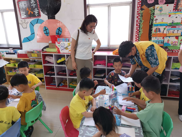 本網訊 為豐富社區內少年兒童的文化生活,提高孩子們的藝術修養,6月28日下午,美術學院學生黨支部、教工第一黨支部、第二黨支部的師生一行12人來到工福街社區幼兒園,發揮自己的繪畫特長,熱心教小朋友們繪畫。