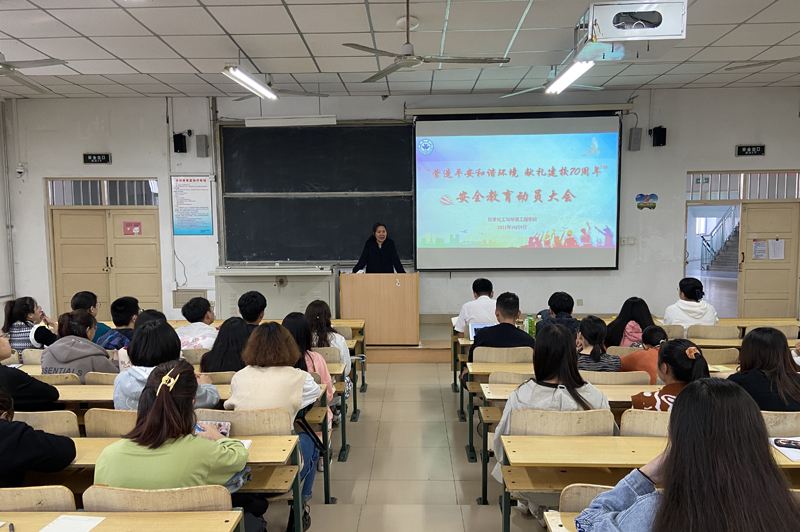 本網訊 為切實加強學生自我安全意識,提高自我管理能力,喜迎建校70周年,10月9日,化學化工與環境工程學院召開“營造平安和諧環境,獻禮建校70周年”安全教育動員大會。會議由學院黨總支副書記孫玉鳳主持,學院團總支副書記馬永生,全體班長、團支書及宿舍長參加會議。