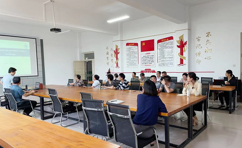 本次活動由劉偉博士主持,邢明青教授主講了最近研究內容和完成的論文,題目為《Cross ownership and R&D risk choices in a duopoly(雙寡頭壟斷中的交叉持股與研發風險選擇)》,該論文對交叉持股和研發風險進行界定和解釋,并介紹了相關領域的研究現狀,通過構建博弈模型研究交叉持股是否有利于研發投入的增加。隨后,各位老師圍繞邢明青講述內容進行了熱烈討論,張帥、陳磊博士等對模型的構建和部分假設條件的設置提出了意見建議,李慶軍博士等重點關注其研究方法,并與自己的研究思路相結合,提出了一些新想法新思路等。