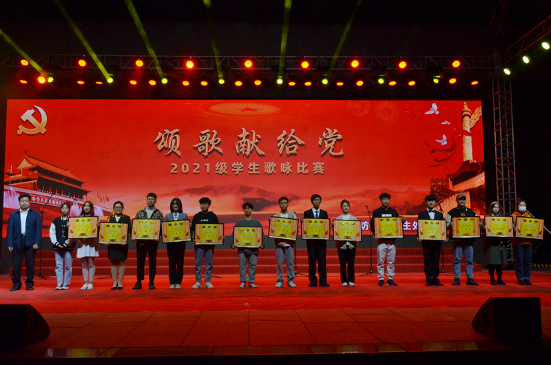 本網訊 為慶祝中國共產黨成立100周年和建校70周年,10月12日晚,學校在行政樓北廣場舉行“頌歌獻給黨”2021級學生歌詠比賽。學校黨委副書記王清明,黨委委員、宣傳部長單振濤出席活動,各二級學院、相關部門負責人和2021級全體學生觀看了比賽。