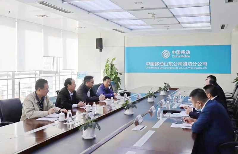 在中國移動濰坊分公司,公司黨委委員、副總經理王志強,王曉金接待了丁子信一行。丁子信對移動公司長期以來對濰坊學院的支持表示感謝,并誠摯要求公司領導出席濰坊學院70周年校慶。雙方就下一步加強校企合作,進行了深入交流。