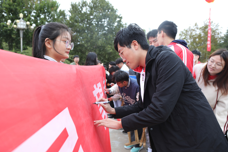活動結束后,師生仍駐足在廣場,爭相在條幅上簽名為濰院獻上最真摯的生日祝福。
