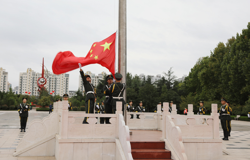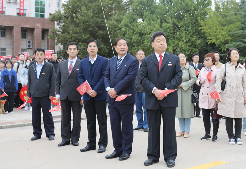 本網訊 金秋的校園彩旗招展、花團錦簇,處處洋溢著喜慶氣氛,煥發著勃勃生機。10月16日清晨,“情系濰院,開創未來”——慶祝濰坊學院建校七十周年升國旗主題教育活動在行政樓前廣場舉行。師生們整齊列隊,目視鮮艷的五星紅旗冉冉升起,共同為濰院送上誠摯的生日祝福。學校黨委副書記王清明出席活動。