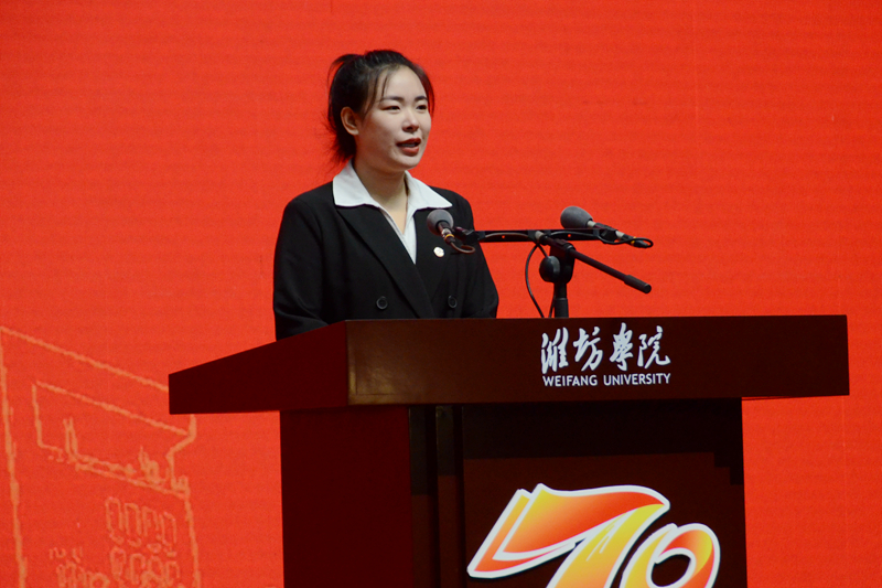 “我們生逢盛世,肩負重任,必將與時代同向同行!”文學與新聞傳播學院2018級學生張淑琪代表在校生發言。她說,我們在最好的年紀來到了濰坊學院,不是空著手而來,而是帶著青春的夢想,帶著求知的熱忱,帶著報國的熱血而來!我們要永葆家國情懷,傳承弘揚“和衷共濟、艱苦奮斗、追求卓越”的濰院精神,在這最好的時代書寫熠熠生輝的篇章,在為民族、為人民、為人類的不懈奮斗中綻放絢麗之花。