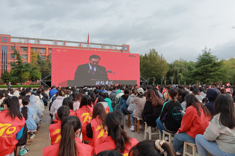 大會通過濰坊廣播電視臺進行直播,同時在濰坊微直播、濰坊學院官方微信、微博、抖音等平臺線上直播,并在主校區運動場、安順校區廣場和各教學樓多媒體教室設立分會場,全校師生員工和廣大校友同步收看慶祝大會盛況。