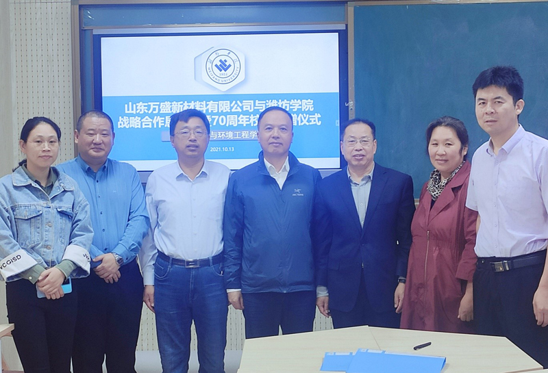 10月13日,山東萬盛新材料有限公司來我院進行戰略合作洽談,并為學校70周年校慶進行了捐贈。