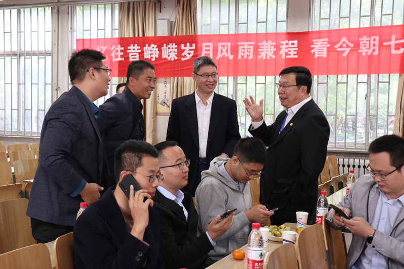 校園里彩旗飄揚,祝福的標語隨處可見。原濰坊高專計算機科學系及原計算機工程學院領導,輔導員代表及部分校友齊聚天一樓7101教室。教室大屏幕上循環播放著計算機工程學院宣傳視頻,學院領導老師同校友們一起觀看,暢聊過往。王成端對重回母校,慷慨解囊,捐資助校的校友們表示歡迎和感謝,是各行各業取得卓越成就和巨大貢獻的學子們造就了濰院今日的輝煌。原主任趙景林教授說,和衷共濟,開創未來,未來的濰坊學院必將更加精彩。隨后,學院領導陪伴校友們重游母校,合影留念。