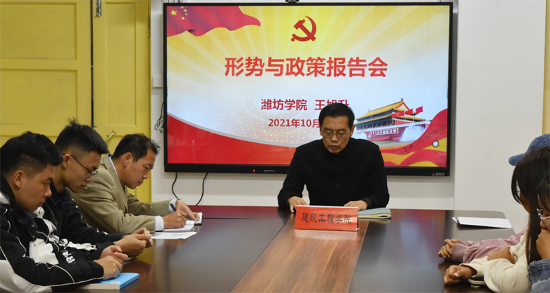 本網訊 10月19日,副校長王旭升到建筑工程學院給學生黨員和入黨積極分子作《學習習近平總書記“七一”重要講話》的形勢與政策輔導報告。