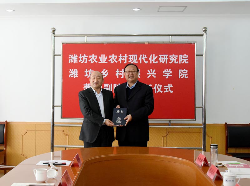 本次聘任的兩位兼職副院長是我國農業農村現代化研究和服務鄉村振興的先行者和行業領軍人物,分別在濰坊農業農村現代化指標體系研究、山東鄉村振興服務聯盟、山東農業產業規劃、國家農業開放發展綜合實驗區建設等領域,對濰坊鄉村振興事業做出了突出貢獻。李繼凱和馮海強在致辭時表示,一定進一步加強合作,不負重托,為推動濰坊乃至全國農業農村現代和鄉村振興做出新的更大貢獻。