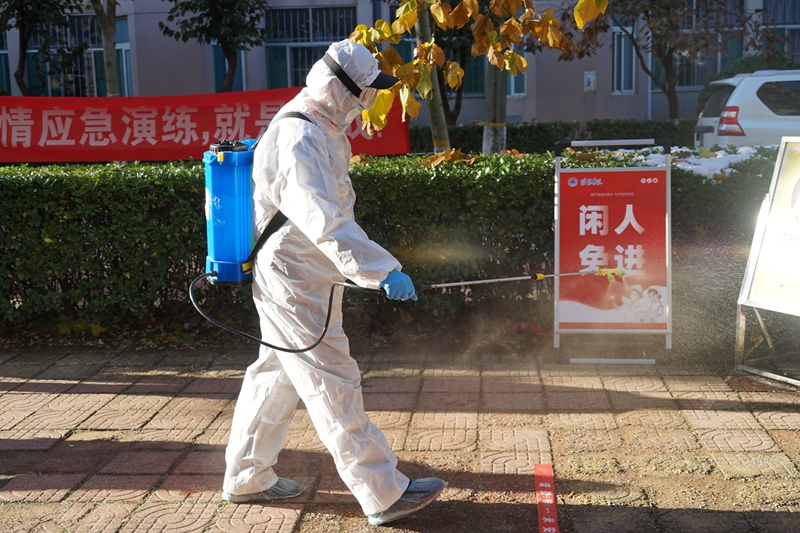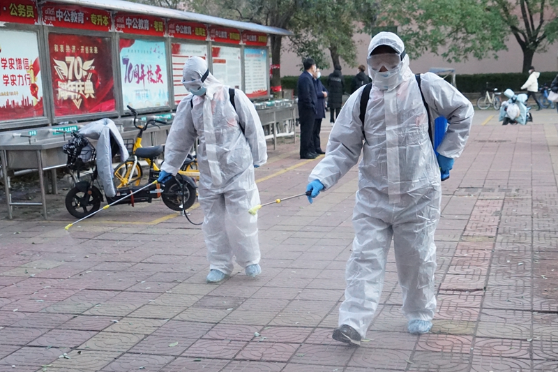 消殺人員對學生甲駐留場所進行終末消毒。沿學生甲行動軌跡,對有關場所全面進行徹底消毒。