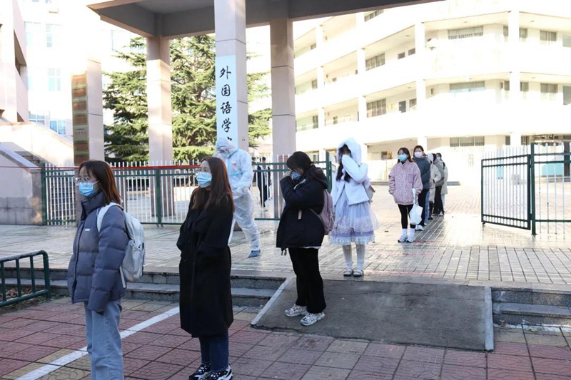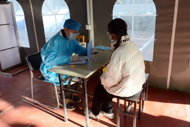校醫、輔導員協助疾控中心開展流行病學調查,確定密切接觸者、密切接觸者的密切接觸者(次密接)、一般接觸者范圍。輔導員協助排查,密切接觸者、次密接,間隔1米在小廣場等待救護車轉運。