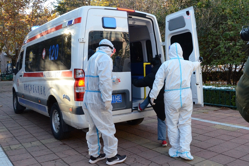 輔導員協助排查,舍友均為密切接觸者,在宿舍戴口罩、間隔1米距離,等待救護車轉運。